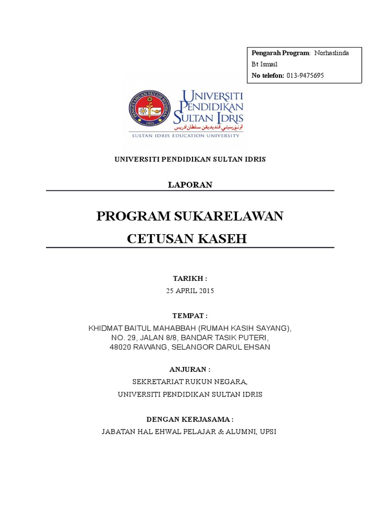Laporan Sukarelawan Cetusan Kasih Pdf